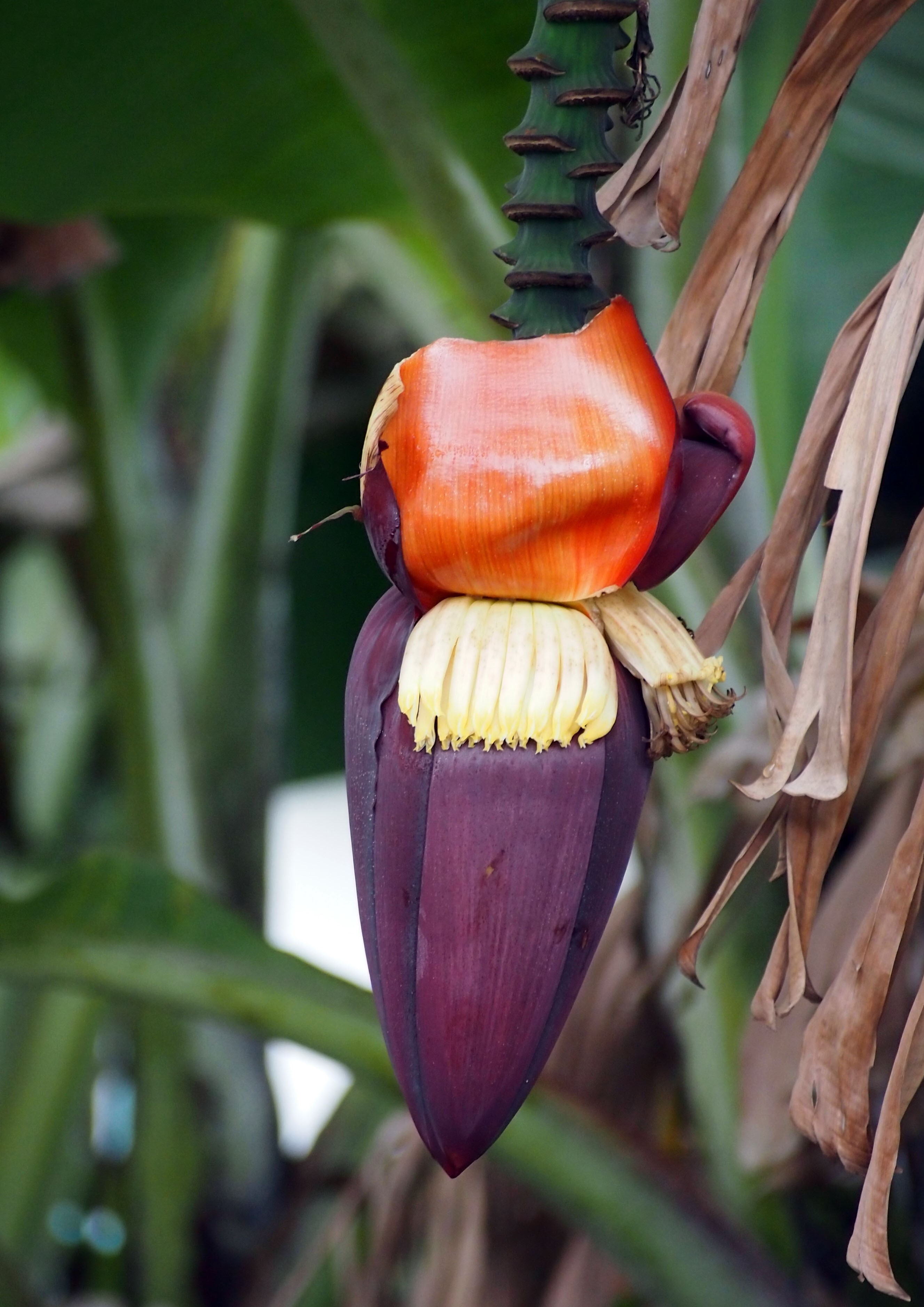 バナナの花に見えますがこれは苞葉といい、花ではありません。 |